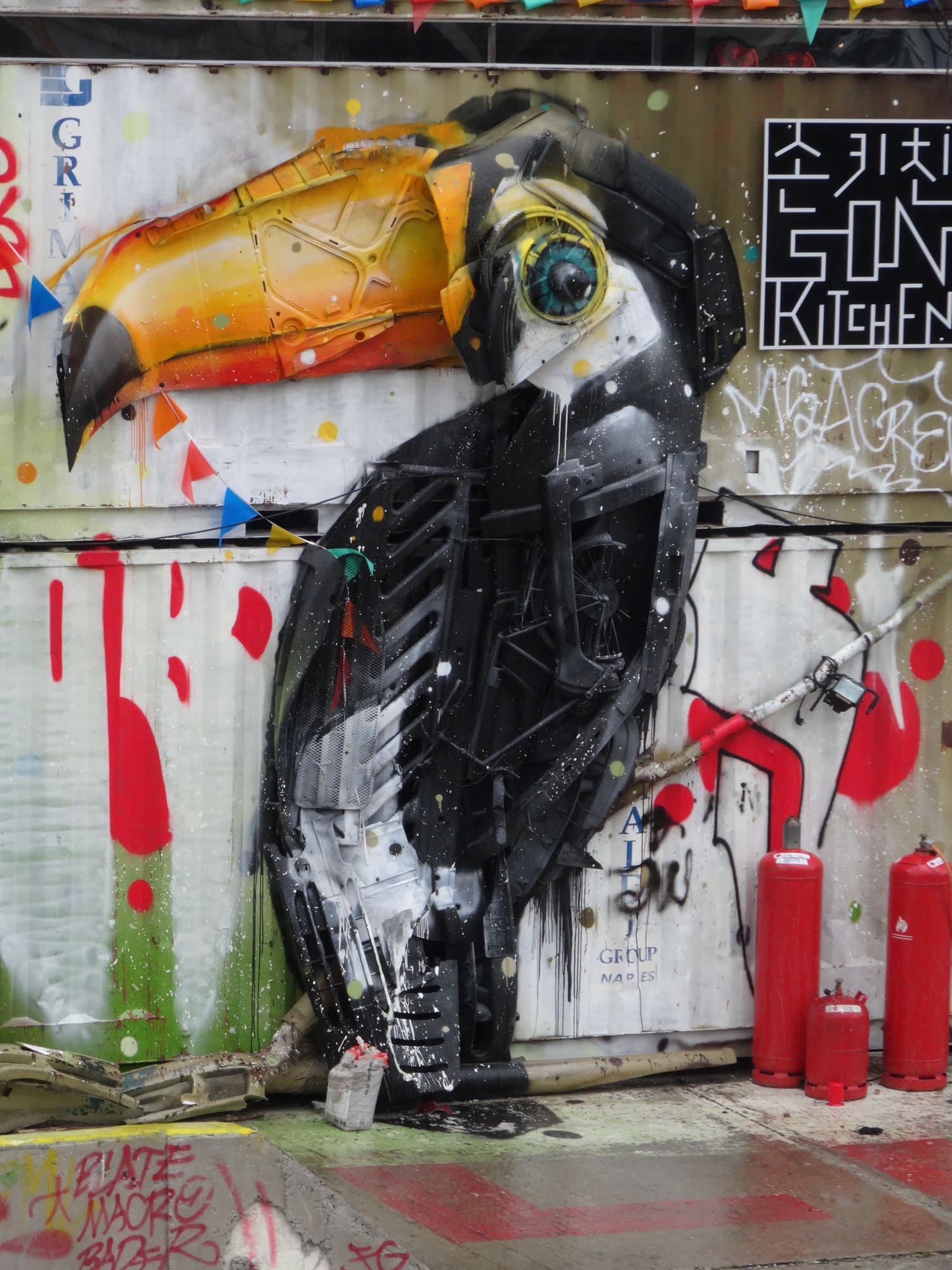 Mittlerweile gibt es einige äußerst bekannte Street Art Künstler. Allen voran Banksy, bekannt für seine politischen Statements, die dank der recht schnellen Stencil-Technik (Motiv wird mit Hilfe einer Schablone angebracht) plötzlich im öffentlichen Raum auftauchen. Banksy ist da schon irgendwie ein Kommunikationsgenie. Immer zur richtigen Zeit am richtigen Ort mit der richtigen Botschaft. Der französische Street Art Künstler JR ist hingegen dafür bekannt, dass er riesige Plakate von zuvor fotografierten Menschen aus den unterschiedlichsten sozialen Schichten an Hauswände anbringt. Das deutsche Street Art Duo HERAKUT definiert sich über großflächige Murals (Wandgemälde), die eine sehr individuelle Bildsprache besitzen. Der Mensch steckt hier meist in der Hülle eine Tieres, kombiniert mit einem Spruch, den die Künstler je nach Entstehungsort auch in mehrere Sprachen übersetzen. Die Kunstwerke spielen meist auf gesellschaftliche Probleme und Fragen an. Die italienische Künstlerin Alice Pasquini hat sich ebenfalls zur Aufgabe gemacht gesellschaftliche Themen über Wandgemälde zu vermitteln.